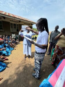 The event was marked by speeches that underscored the importance of community support in education. Ms. Agnes, the District Education Officer (DEO) representative expressed her gratitude to the Kitabu-Buk Project team, ‘ I never expected this initiative is run by young people, if all the youths out there would follow the footsteps of these young people, then Uganda would have no problems’ The SMC expressed their gratitude for the donations and the presence of the donors, acknowledging that these contributions would significantly improve the learning conditions at the school. They also highlighted the ongoing challenges, particularly the need for clean water and better accommodation for teachers, urging continued support to uplift the school and the community at large.